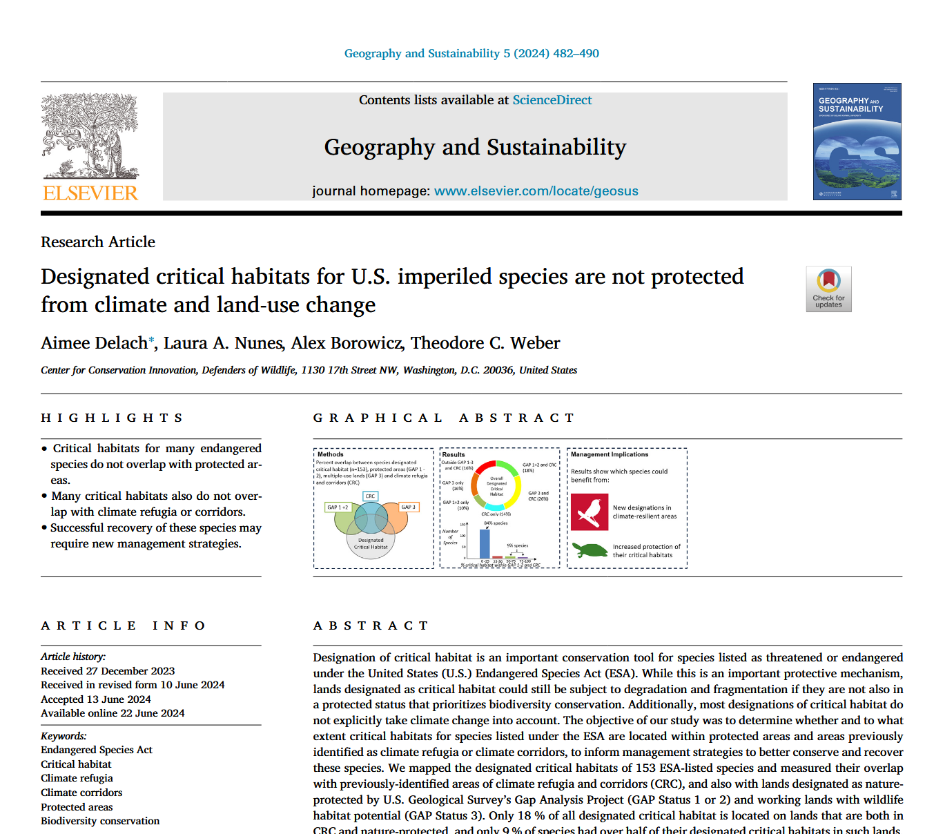 Designated critical habitats for US imperiled species are not protected from climate and land-use change